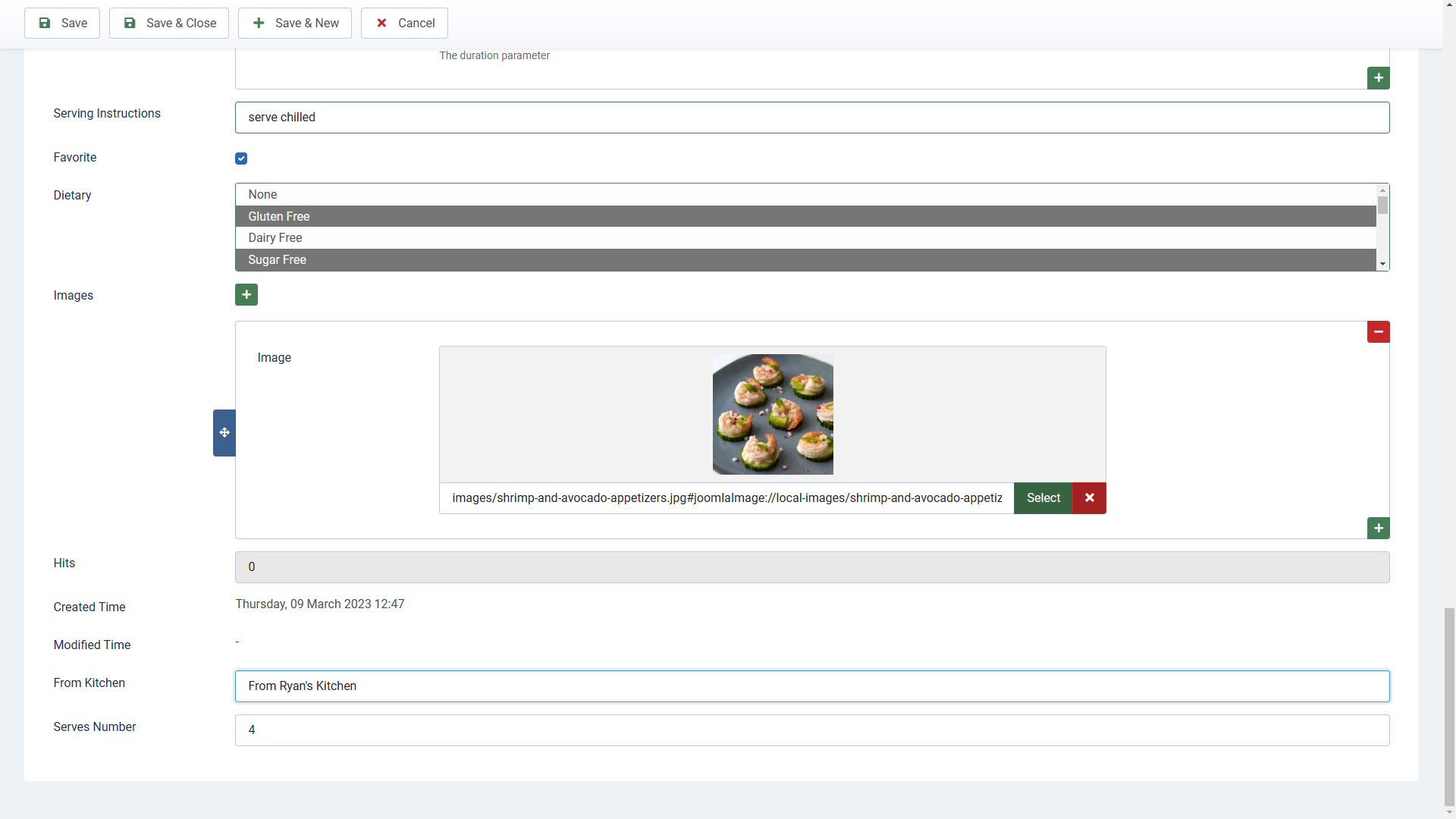 To finish off the recipe, you can add any serving instructions, make it a favorite, add images, a short note of the origin and how many it serves.